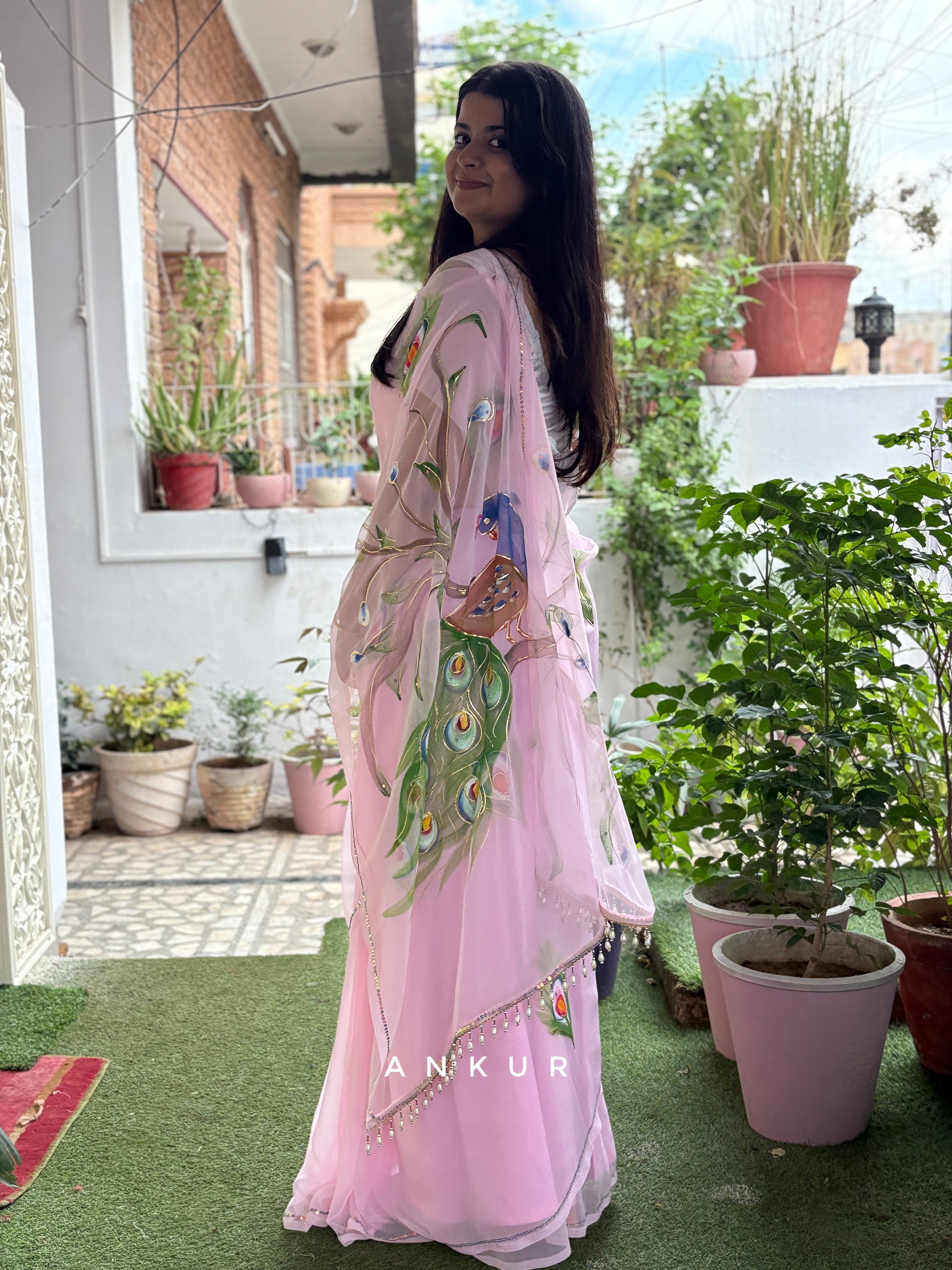 Note: These sarees don't have blouse with them as customers prefer wearing contrast or matching blouse with they like or you can choose cotton blouse fabric from option for 150/- (colour of that will be decided by ankurs team )