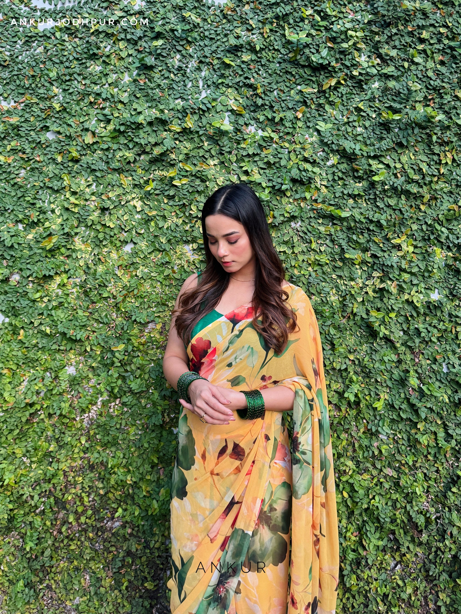 Very Soft Georgette based saree with beautiful trending Traditional colours in saree.