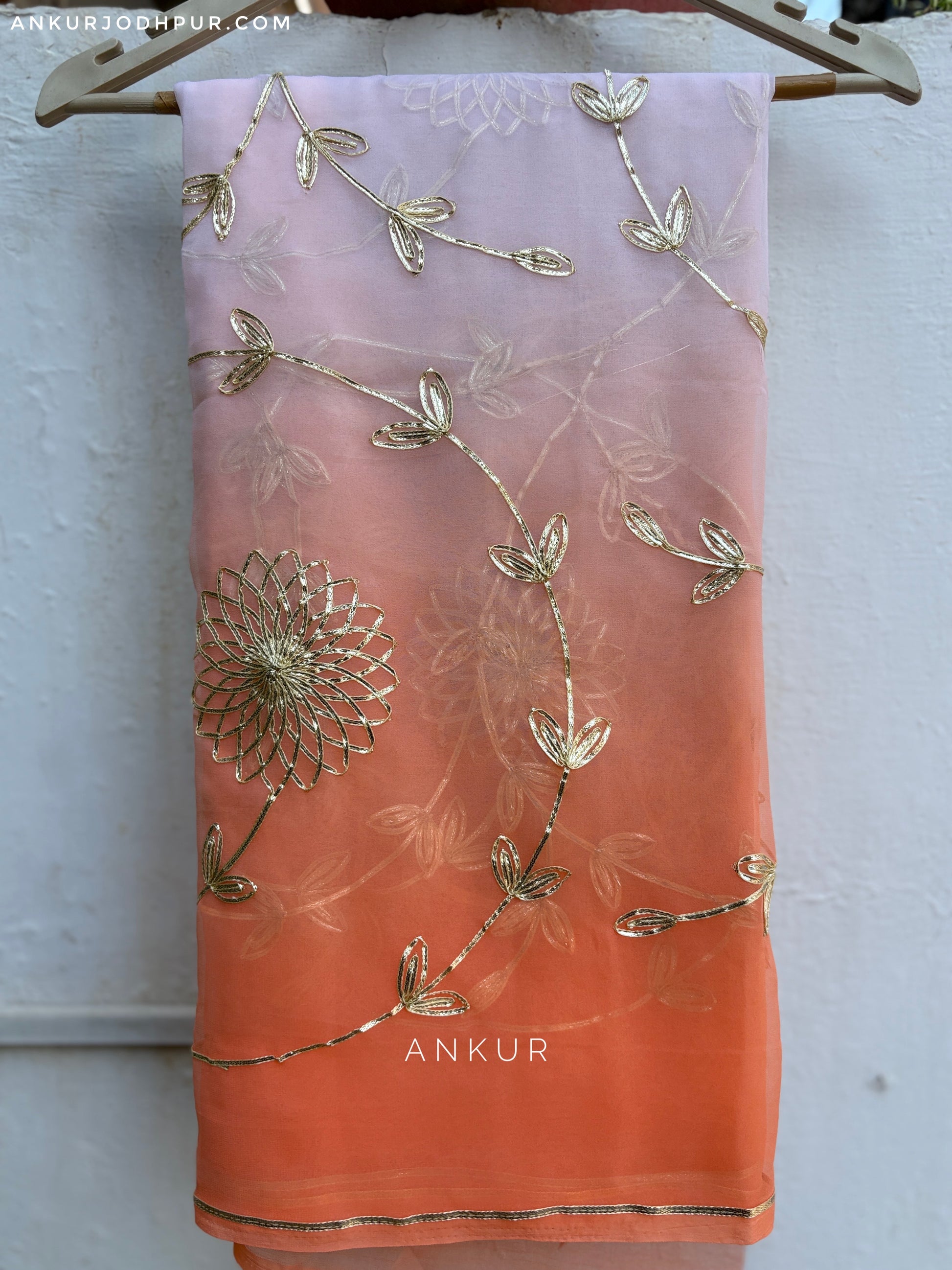 Georgette based saree with beautiful jaal all over the saree. Shade is Dark light Dark.