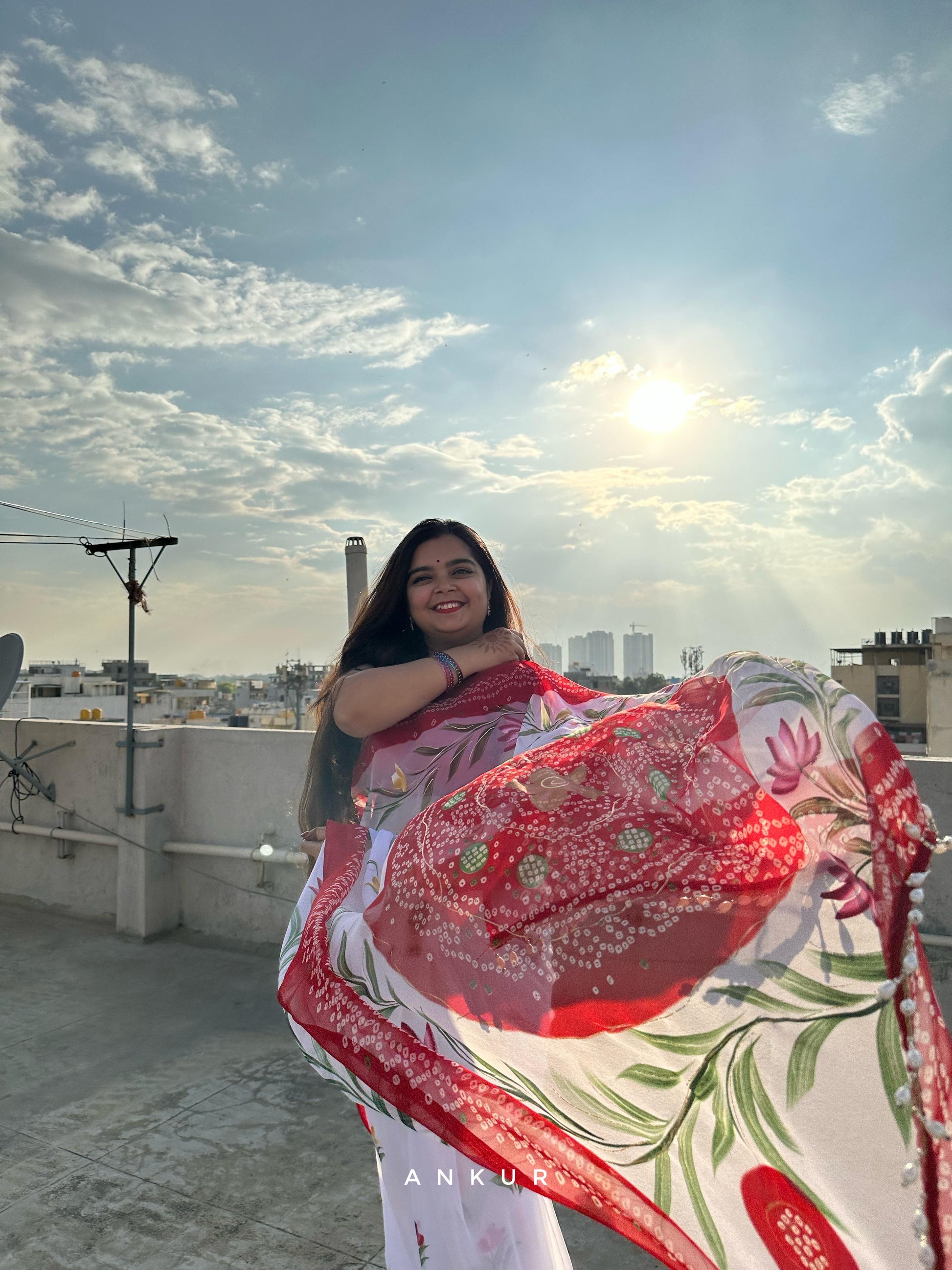 Hand Painted Red Faganiya with moti latkans