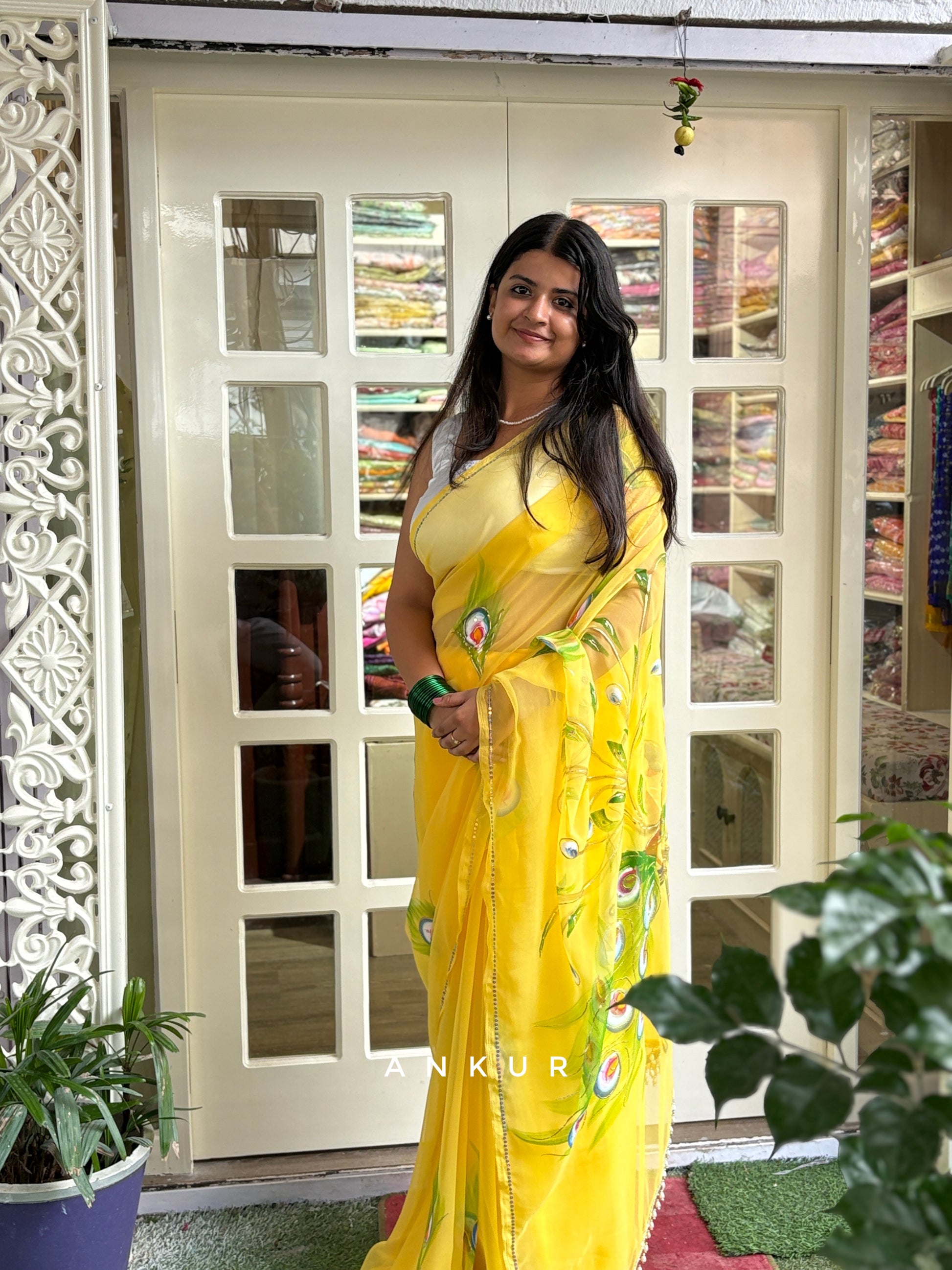 Chiffon Georgette based saree with beautiful Brush work all over the saree.