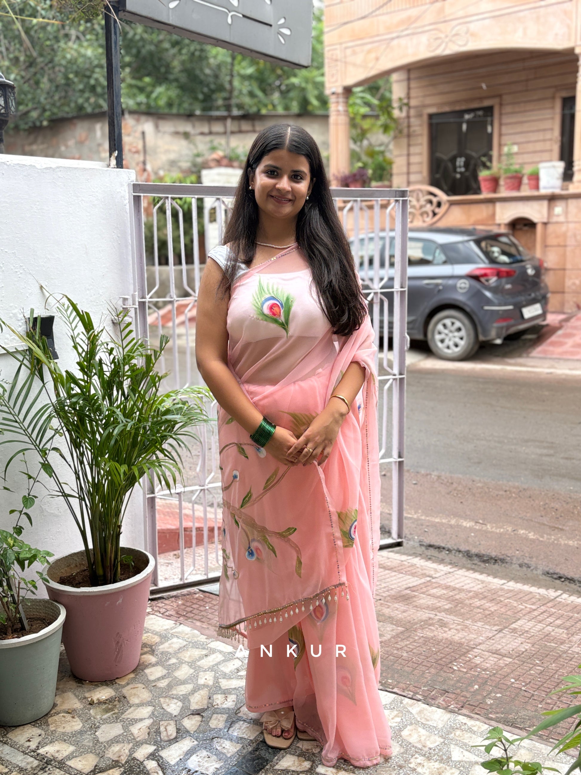 Note: These sarees don't have blouse with them as customers prefer wearing contrast or matching blouse with they like or you can choose cotton blouse fabric from option for 150/- (colour of that will be decided by ankurs team )
