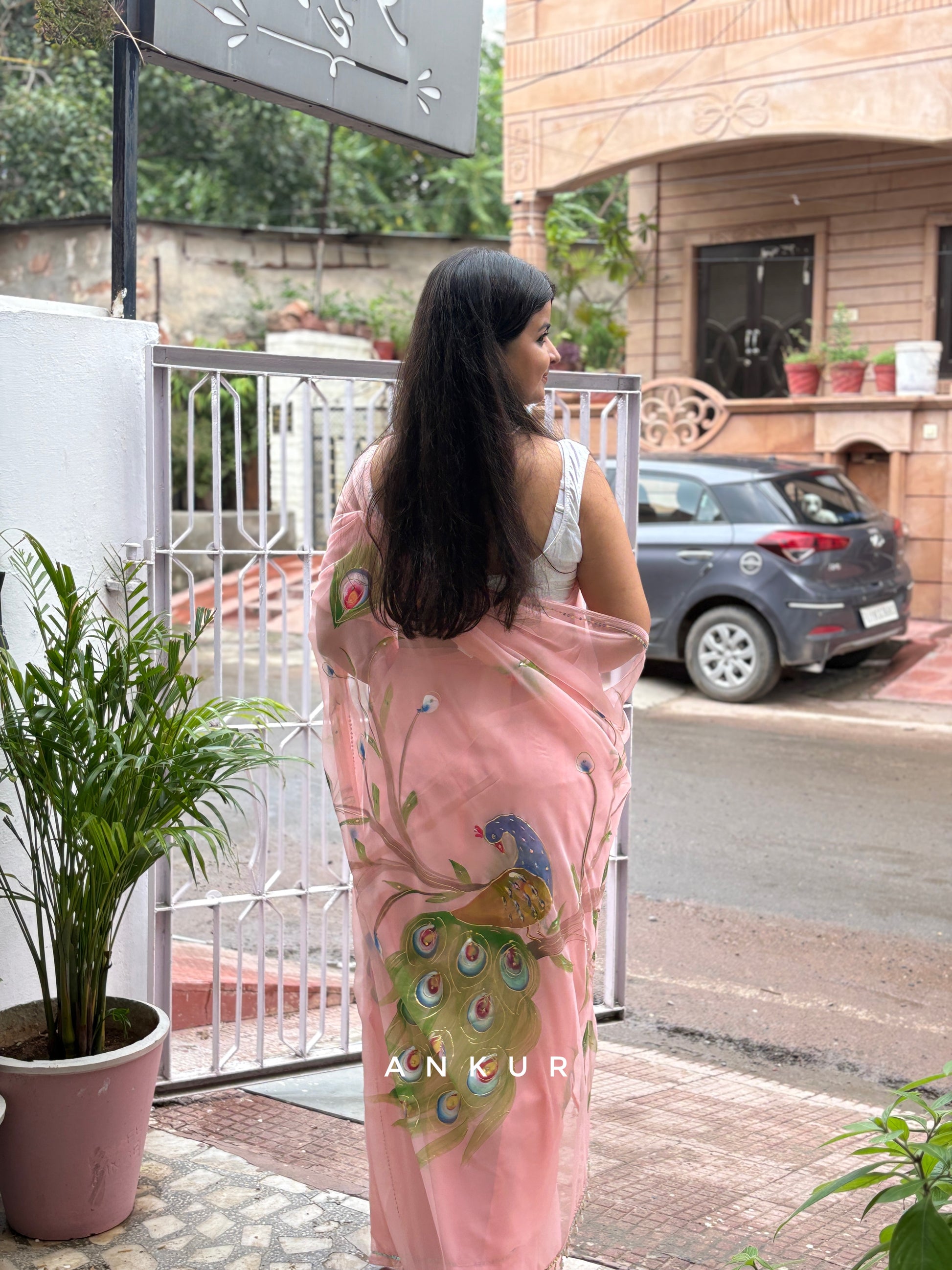 Chiffon Georgette based saree with beautiful Brush work all over the saree.