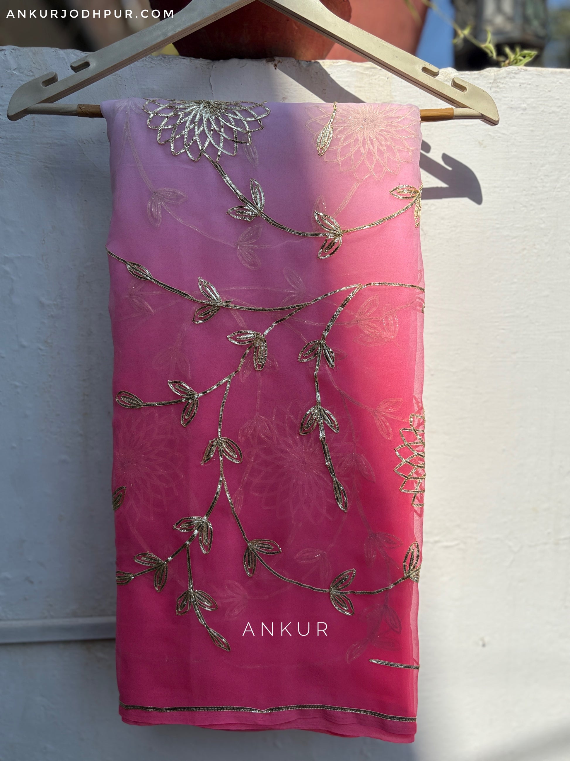 Georgette based saree with beautiful jaal all over the saree. Shade is Dark light Dark.